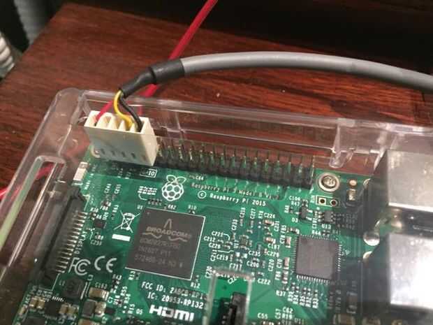 Con tu RPI accionado apagado, conectar la hembra de 5 pines a la conexión GPIO, con el cable rojo en el perno 1 haciendo coincidir con el pin 1 del conector GPIO. El encabezado debe cubrir sólo los primeros 5 impares numeradas pins GPU.