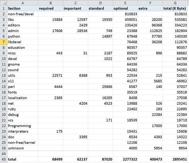 También he desinstalado todos GUI (y otras innecesarias) paquetes, usando mi archivo de Excel, excepto libx11-datos y x11 común (estos archivos tienen dependencias).