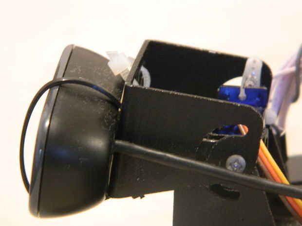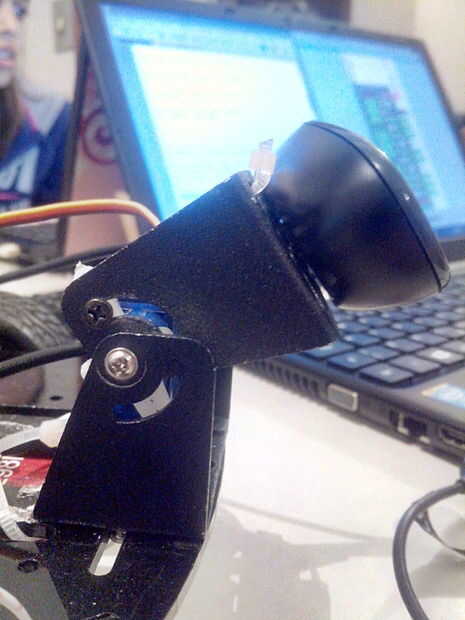 Por último, hemos desarrollado un mecanismo para obtener la información desde el eje de Y y de una manera que se produce además de los movimientos horizontales y abordar el movimiento de la cámara vertical. Para que fue utilizado por la cámara, un soporte de inclinación, que permite el movimiento vertical del receptor artificial con el fin de seguir el movimiento del objeto (color verde) en el eje Y que su montaje se realizó frente al sistema, permitiendo a la cámara puede "ver" el objeto antes de que choca con el chasis.