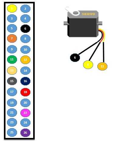El núcleo elegido fue Occidentalis v0. 2 de Adafruit (haga clic aquí para descargar), que incluye normas para la declaración de la sirvienta. Estos estándares están escritos los códigos en un archivo durante la ejecución del script y son hechos por una función. Este núcleo permitió activar un controlador PWM de la GPIO 18 (pin 12) lo que permite la rotación del servomotor en un ángulo en grados desde 0 grados a 180 grados.