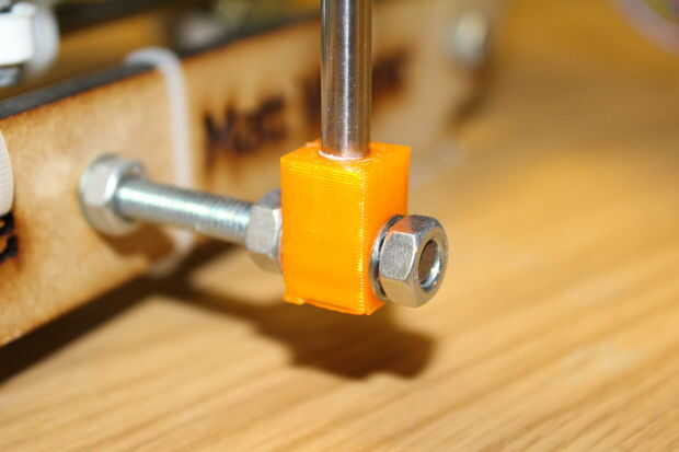 Los nuevos soportes segurar la lineal directamente sobre la varilla roscada transversal que pasa por debajo de la plataforma de construcción y fueron súper pegados para la buena medida, junto con los dedos de Ananda.