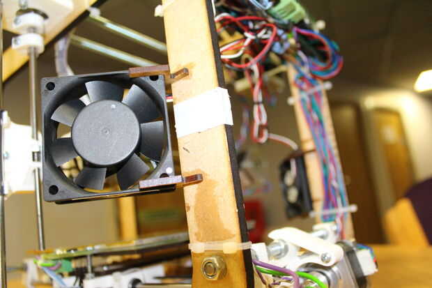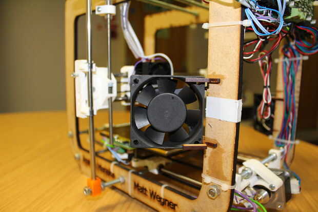 Uno de nuestros profesores increíbles, Glen, había adquirido algunos viejos ventiladores de computadoras del Departamento de ti y esto fue lo que nos dio la idea de construir los aficionados en el marco de la impresora. Los ventiladores están conectados directamente a la fuente de alimentación de la Junta - ** no conectar ellos a 'fan' en el tablero principal **.