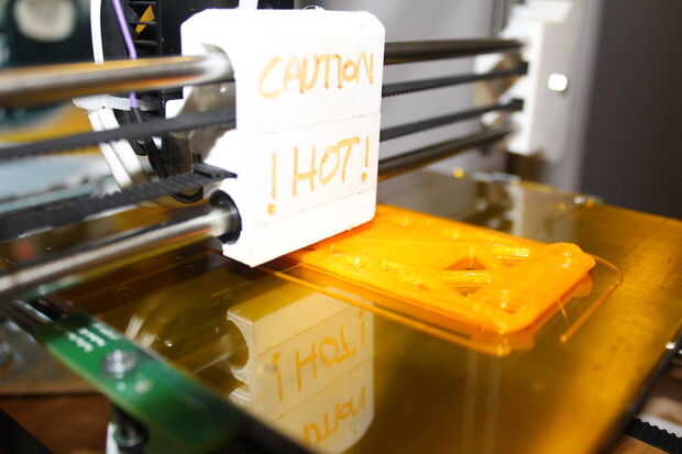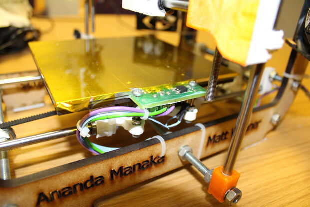 - Limpieza de la boquilla: levantar el eje de z 50mm de la casa y el extremo caliente a 200 a través de 'Pronterface'. Limpie la tobera de cualquier material en exceso usando un cuchillo o espátula de madera ** cuidado ** este debe ser hecho con extrema precaución, es el extremo caliente hasta 250 grados c!