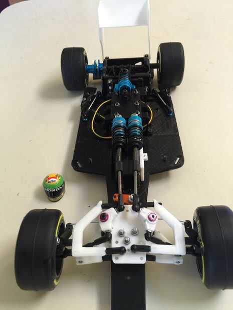 Usé 2 amortiguadores de 55mm con ejes de 110m choque. Esto no es necesario. Puede utilizar los amortiguadores de 55mm como es, con más tensor m3 para alcanzar. Usted puede cubrir los ejes con la identificación de 4mm de tubería de fibra de carbono, 6 mm od para que se vea bonito.