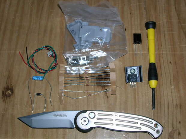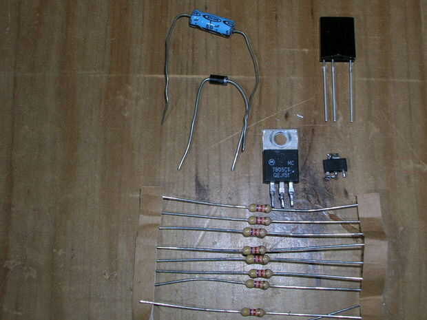 regulador de voltaje 7805: utilicé un grande hecho por Motorola en el primero de estos receptores que hice y tuve que acortar las patillas muy cortas y clip y moler la sección superior del poste para conseguir que encajen en el D-sub (ver fotos del proyecto terminado). Sin embargo, cuando yo estaba cavando alrededor para piezas hoy, me encontré con un montaje superficial 7805 que obtuve de Texas Instruments como muestra hace años. Es pequeño e ideal para este proyecto. Definitivamente lo usaré la próxima vez que construir uno de estos ya que reducirá la huella del circuito tremendamente. Tanto las grandes y pequeñas 7805 están marcados en la imagen de primer plano de electrónica.