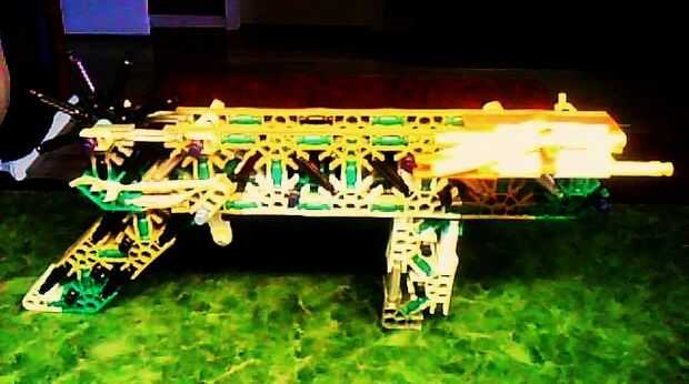 esta es mi arma favorita de K'nex construido por la propia. es una foto única pero puede ser muy potente dependiendo de cuántas gomas le agregue es el mecanismo de disparo. Me gusta porque hace buen uso de piezas de flex. Trabajar la pistola tirando