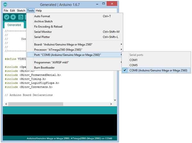 Paso 19: Generar, compilar y cargar el código de Arduino en el Arduino Mega