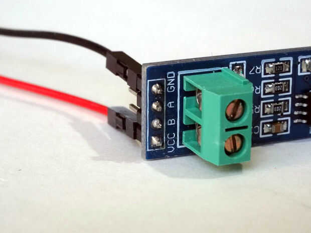 3. Coloque un puente entre los pines DE y RE del Módulo RS485 (foto 2)