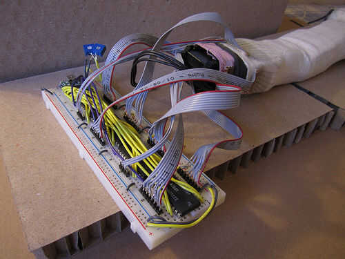 Si no toca la piel entonces estos números deben permanecer relativamente estable (el mismo), y presionando en diferentes lugares el guante debe resultar en un cambio de números, aunque usted probablemente no será capaz de hacer sentido.