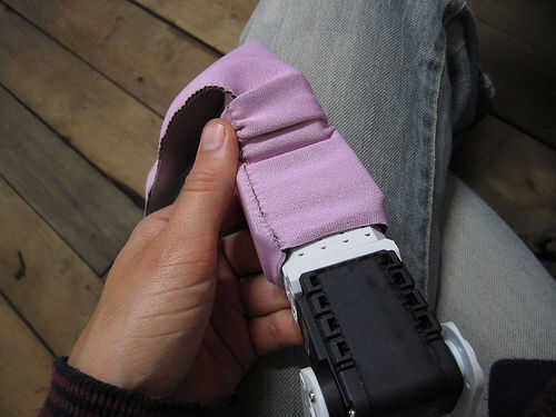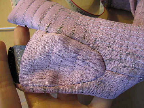 Usé una puntada recta para coser las costuras y jalarla ligeramente en la tela como alimentaba en la máquina de coser para asegurar que las juntas serían capaces de estirar con la tela después de que fueron cosidos.