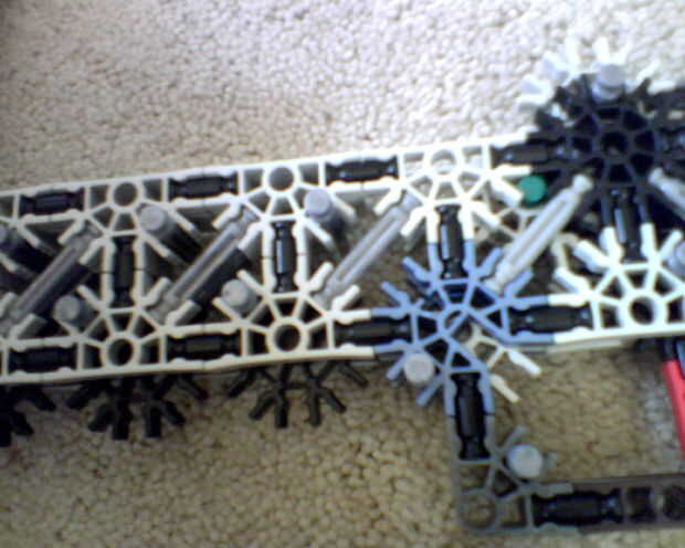 mango siga fotosPaso 1: Parte del barril Seguir fotosPaso 2: barril Fotos de seguimiento es ll de largo con 8 luego el trinquete que es un copo de nieve con dos barras verdes y barril de dos piezasPaso 3: La parte posterior del barril y el alcance Fo