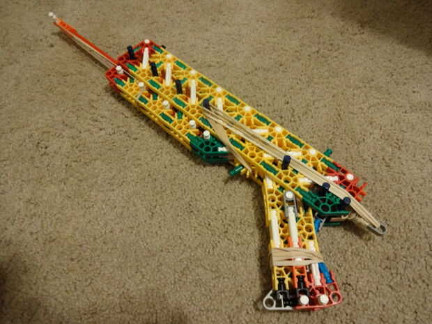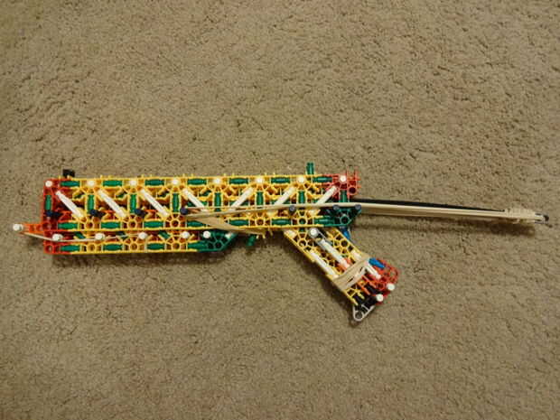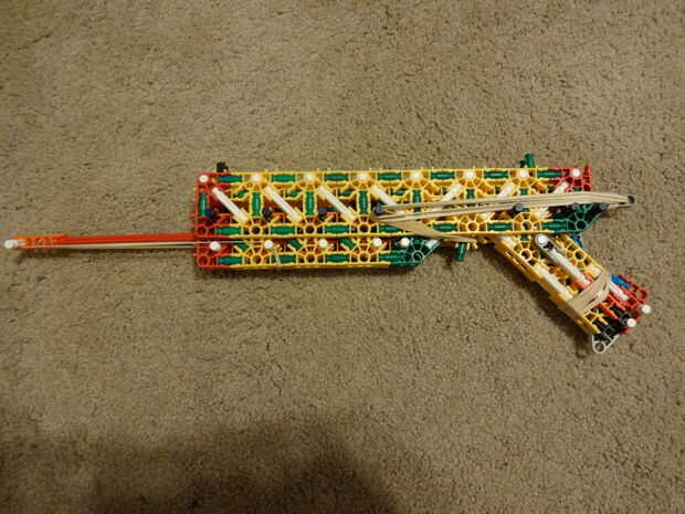 Tubular revistas armas siempre han sido una suposición mía, ya que tengo un Henry Lever Action.22 LR para Navidad 2 - 3 años. Como es el caso, decidí establecidos y hacer uno de K'NEX. El arma que ves abajo es quizás mi intento de 4 y 5 y en última instancia es mi mejor. Tiene 4 ronda si usted decide utilizar la barra de carga, pero si decides no, llevará a cabo 5. Prefiero no utilizar el CR, como me gusta tirar, tire hacia atrás el FP, poner una nueva bala en TM (compartimiento tubular) (esto carga una nueva bala en la cámara), el fuego, y luego repetir. Es bastante cómoda y ligera, pero hay que reconocer que es lo más raro para cargar un mag que he visto en un arma K'NEX.