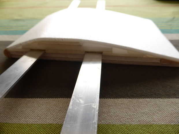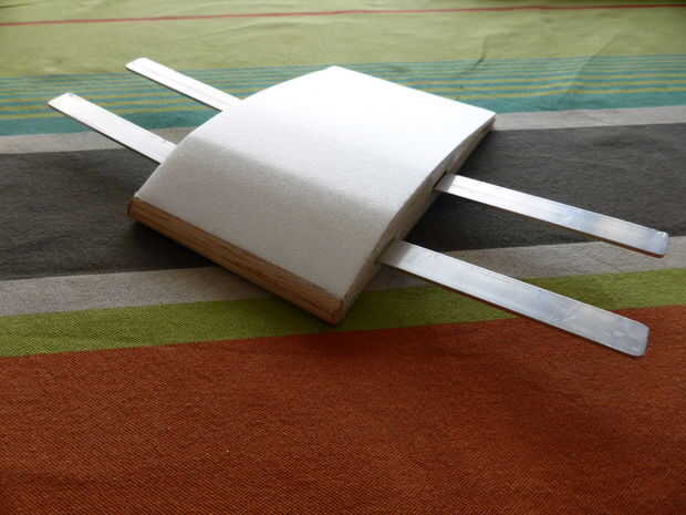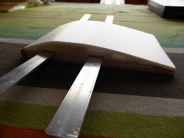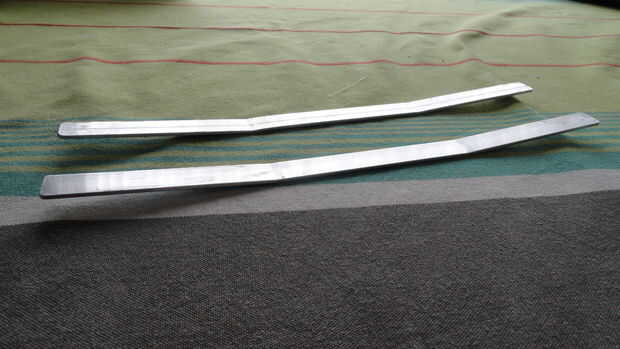 - Tomar dos listones de metal tan amplia como sus ranuras y dar ambos extremos libres de una curva de 5 grados hacia arriba.