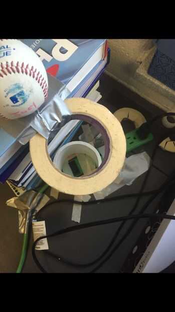 El béisbol, después de ser golpeado por las fichas de dominó, cae fuera de la pila cae a través del rodillo de la cinta y golpea el interruptor para el ventilador en el acorde de la extensión, encender el ventilador.