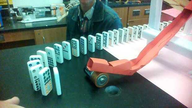 Cómo hacer un domino aldaba al igual que en TeacherOfTheWays' s máquina de rube goldberg