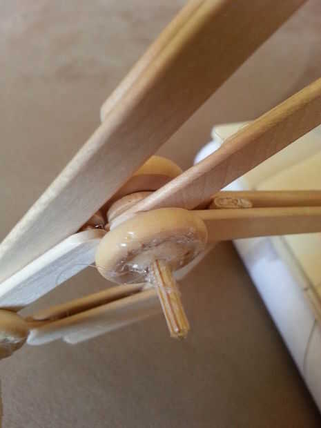 -Ruedas de madera que actúan como las arandelas en los extremos pega.