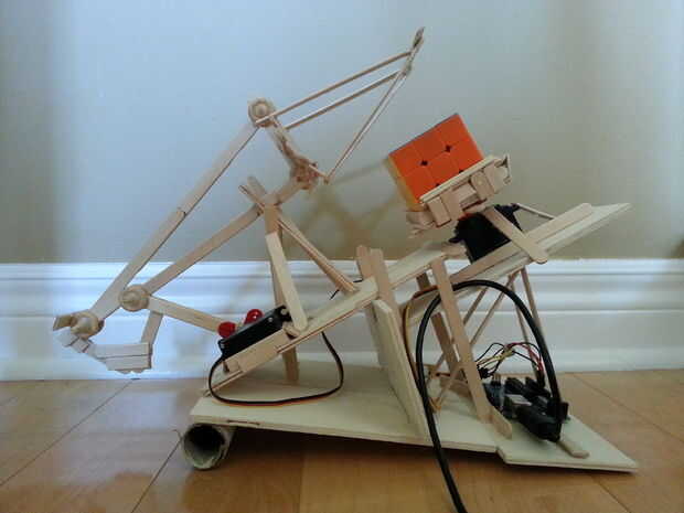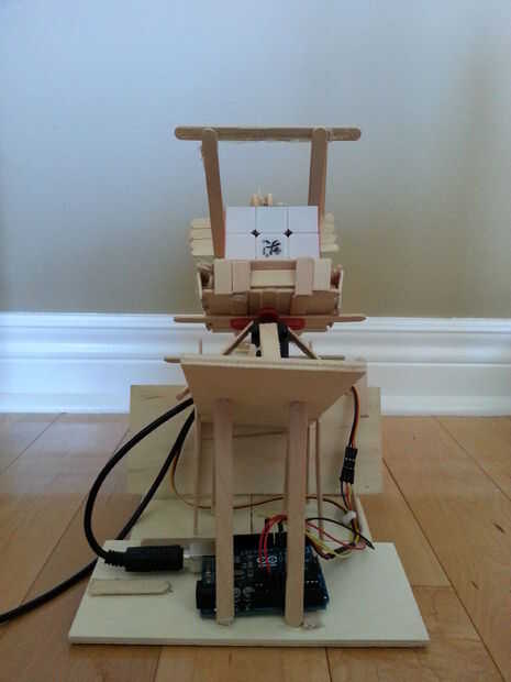 Me vieron unos diseños pero se establecieron en el Twister inclinado porque sólo requiere 2 servos para operar, que no era tan compleja mecánicamente como otros robots como el Cubestormer.