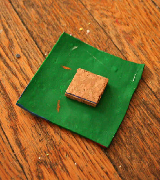 Desde ahí, disparar tu pistola de pegamento caliente y pegamento en un trozo del tablero del corcho en la parte inferior de la Plaza.
