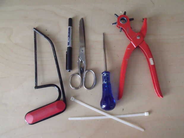 Pequeña sierra para metales, tijeras, punzón, puede ser un revolver barra, rotulador.