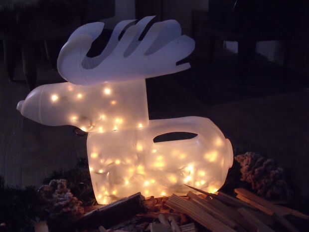 ¿qué es explicar? Paquete de la cadena de luz y tire unos cuantos de la luz en la cabeza. Yo les envuelve la "cola" del cintillo para evitar caer hacia fuera. Coloque su Reno donde parece agradable. Usar luces al aire libre al poner fuera de!
