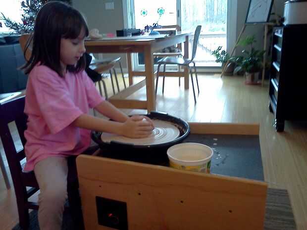 Navidad vino y la cerámica rueda fue un gran éxito con mi hija. Ella intentó lo mismo esa mañana y la rueda funcionado muy bien. Me centré la arcilla para ella y ella lo tomó de allí. Al girar en la rueda de alfarería, hay unos 10 segundo retraso antes de que el motor arranca. . También arranca lentamente luego rampas hasta la velocidad deseada. Esto debido a la velocidad de correr circuitos de control es importante apagar el interruptor cuando se hace se utiliza. A pesar de que el dial de la velocidad de la rueda se gira a la posición de apagado, una cantidad pequeña de corriente continúa fluyendo al motor que puede dañar el motor si se deja en. Por esta razón montara una luz indicadora, para recordar a usuario que está todavía encendido. Planeo subir con algún tipo de pedal del pie para el ajuste de la velocidad de la rueda de "manos libres".