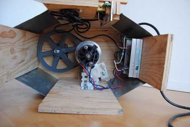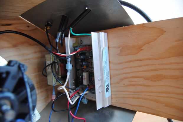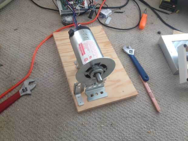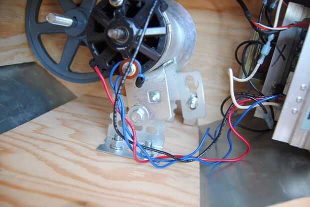 Eliminado la rueda volante del motor, unido a la polea de 2.5" y atornillado todo en una pared del chasis de la rueda de alfarero. Este paso es mucho más fácil de completar antes de ensamblar todas las paredes. Como se puede ver en las fotos, pienso montar el tablero de regulador y transformador como cerca de la salida de cable y tan lejos de la cabeza de la rueda como sea posible. He intentado aislar estos componentes de tantas partes potencialmente húmedas partes móviles como podía manejar. Yo también cableado un interruptor tenía colocación alrededor y esta instalado junto con el fusible en una de las piezas de metal con respaldo de la esquina.
