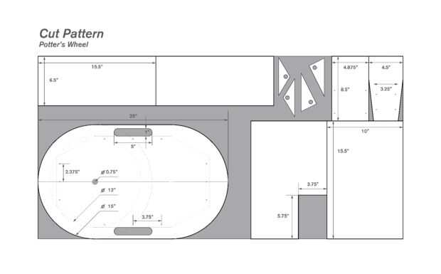En primer lugar tengo una idea general de la altura de la cubierta final que quería por mi superficie de trabajo (19,5" es una altura bastante estándar de alfarero) y luego restar la altura de los componentes para conseguir llegar a una altura de la pared. De esta manera podía asegurar que podría montar el motor y no tengo que hacer cortar ya.