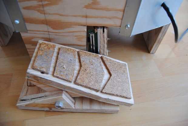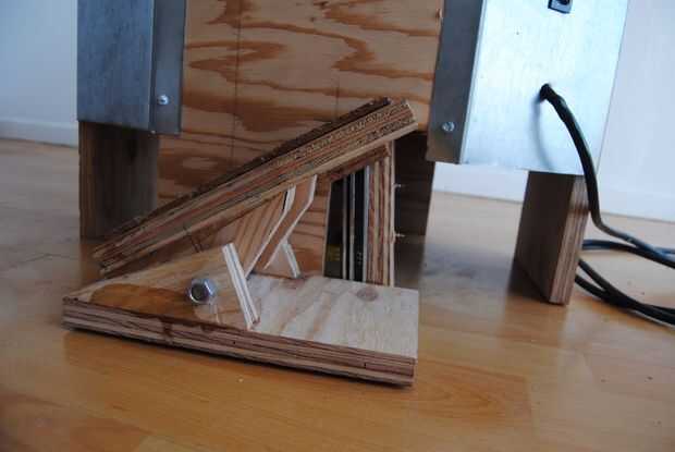 Por suerte, encontré una cinta rodante con un slider por lo que pude de moda el pedal de su potenciómetro y unos pedazos de madera contrachapada. Intercalando la palanca del potenciómetro entre la superficie inferior del interruptor de pie y un trozo de plástico (no imagen), pude controlar la velocidad de la rueda. Es un rockero muy simple que se basa en la fricción de las piezas de madera para permanecer en una posición y velocidad fija. La caída de este diseño es que la electrónica está expuesta a la intemperie. Actualmente estoy trabajando en un escudo que protege del agua u otros objetos.