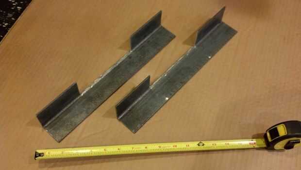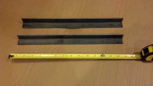 Utilizando la función de corte, cortar tiras de 2 x 14 pulgadas de ángulo de acero de 2 pulgadas. Estos serán la base para el soporte de centrado. A continuación, utilizando la función entallada, corte 6 pulgadas en el centro de cada pieza base. Esta muesca es donde Irán el parales y es suficiente por lo que puede manejar ruedas de hasta 135 mm espaciamiento de 6 pulgadas. Si usted quiere construir las ruedas con un espacio más grande (e.g. tándems), usted necesitará ajustar por consiguiente.