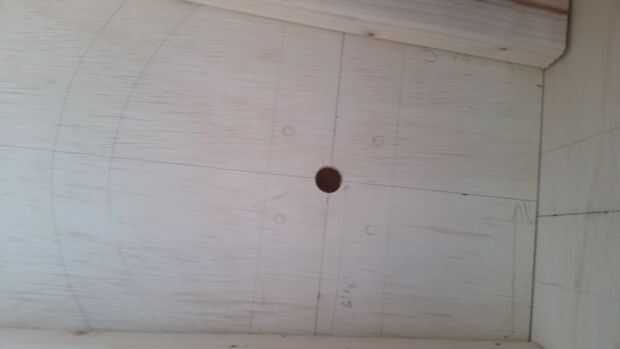 Debido a la altura de la unidad y la lamentable necesidad de equilibrar un sujetador de la cuchilla de tractor desigual, se construyó un estante de soporte para elevar la protección contra salpicaduras de aceite-pan. Además hizo la tabla un poco más alta e instalar un estante para sostener el pedal y materiales diversos de potter cuando no esté en uso. En retrospectiva, con acceso limitado a herramientas de corte precisas (es decir, sólo un rompecabezas) y el deseo para el estante adicional, quisiera optar por un diseño que mantiene el frente y espalda anchos de igual superficie, lo que permite principalmente cortes de 90 grados.