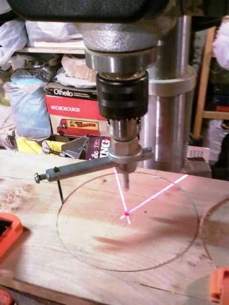 Corte en la madera poco a poco porque atacar la madera demasiado rápida podría aflojar la herramienta de corte o dañar los engranajes en el taladro. En este paso simplemente marqué el diámetro externo, porque necesitaría toda la superficie de la Junta disponible para el siguiente paso.