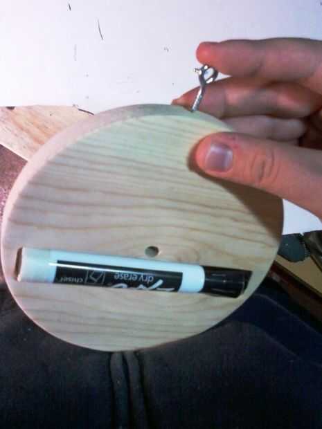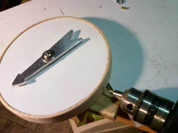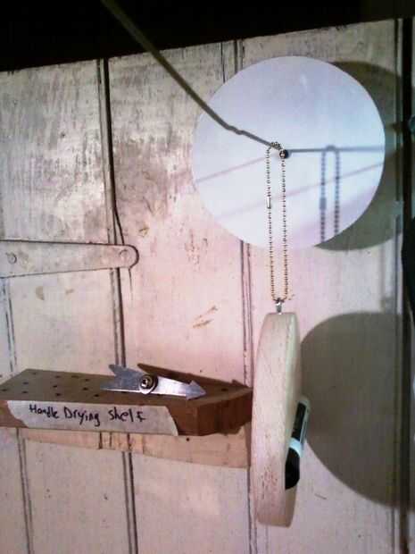 Después de taladrar el tornillo de ojo agujeros (broca de 1/16"), atornillar en y colocar la cadena del grano (aproximadamente 8"), colgué la rueda de decisión en mi estación de secado en la preparación para la tinción.