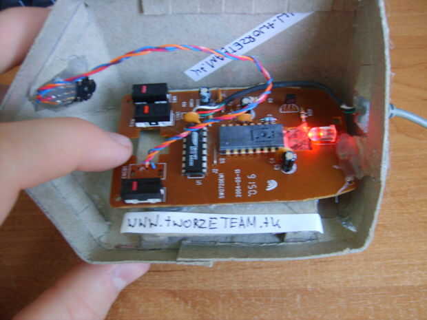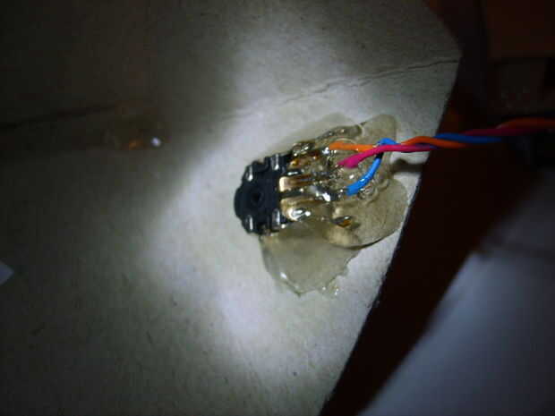 Pegué el sensor óptico para seguimiento de la rueda y el sensor de desplazamiento a la carcasa.