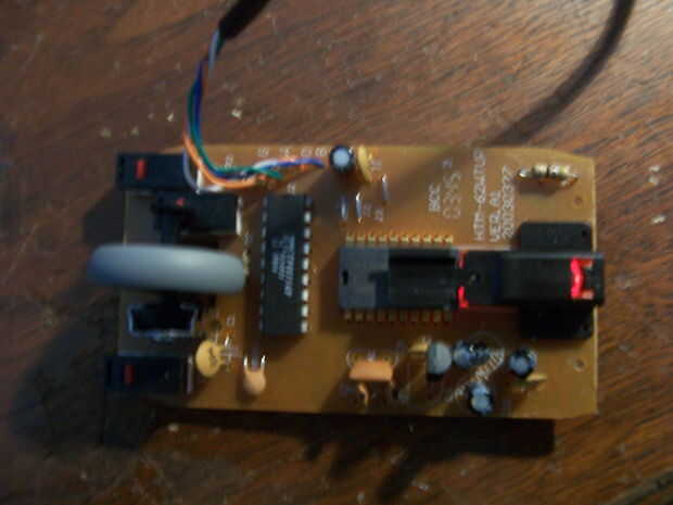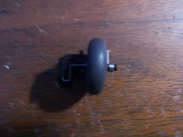 Si usted tiene un ratón óptico, observe que hay poco metal armas que todo el post que el eje de la rueda fue a través de la deformación, usted puede estas abierto haga palanca con un destornillador, o utilice alicates de punta (que encontré más fácil) para abrir lo suficiente para sacar el post de los brazos y quitar la rueda de plástico negro y parte movible del metal lo hace contacto con las ranuras de la rueda. una vez que has tomado el parte movible del metal hacia fuera, reemplace la rueda de plástico negro y uso las pinzas de los brazos de metal de nuevo. Después de que el post es seguro otra vez, empujar la rueda hacia atrás donde estaba.