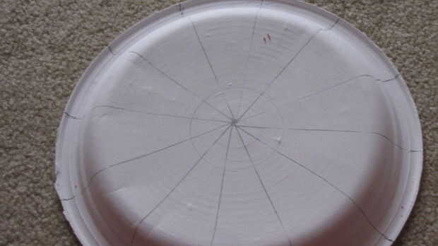 Después de que termines, tomar un objeto pequeño círculo y traza en el centro de la placa donde se cruzan todas las líneas.
