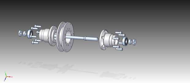 Un centro personalizado es necesario. Si no desea trabajar a máquina a sí mismo uno puede pedirse de ideas2cycles. Las placas laterales están unidas al eje y por lo tanto se requieren Bridas especiales. Las bridas del eje deben ser tan lejos aparte como es ancho el borde seleccionado. Si, por ejemplo, un borde que es de 20 mm de ancho, la distancia exterior entre bridas también debe ser 20 mm. De esta manera las placas de cara plana pueden ser enlazadas con un espesor uniforme de bonos. Un eje de tres piezas diseñado para un par de razones. En primer lugar, se pueden cortar las bridas de gran diámetro de la acción más grande, mientras que las características de diámetro más pequeño se pueden cortar con pequeñas acciones dando por resultado menos material desperdiciado. En segundo lugar, las placas laterales se pueden unir al hub no sólo por adhesión, sino por sujeción entre los órganos del centro. En tercer lugar, la rueda entera no se estropea si se quitan los hilos de la corona, porque la parte roscada puede ser separada y sustituida. La única diferencia con un diseño de eje de pista regular es las bridas. Habló agujero cuenta debe coincidir con la cuenta del agujero en el borde seleccionado, pero no todos los agujeros en el borde tiene que rellenarse. Por ejemplo, una llanta de 32h se puede atar con suficiente exactitud usando rayos de 16, que significa 8 agujeros en cada brida del eje. Una aleación de aluminio duro se recomienda para el material del eje.