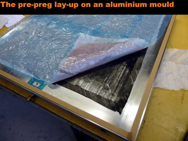 Hay varias maneras de configurar una laminación de pre-preg. Los pasos requeridos son similares como en el proceso VARI, excepto no resina adicional es necesario. Además, los materiales utilizados deben soportar la temperatura flujo y cura de la pre-preg. El laminado es el siguiente: molde de superficie, agente de liberación de molde, capas pre-impregnado, peel ply (opcional), versión película, respiro y bolsa de la aspiradora. El conjunto se coloca en un horno de aire circulante o autoclave. Rampas de calentamiento y el mantenimiento veces se programan usando la unidad de control del horno o simplemente ajustan manualmente. Una vez que la resina totalmente ha alcanzado su temperatura de flujo, se puede tirar completo vacío para la consolidación de las capas. Después de que el laminado ha sido debulked, se eleva la temperatura a la temperatura de curado. El laminado se puede enfriar con el horno o una velocidad de enfriamiento de aproximadamente uno Kelvin por minuto se puede programar para evitar tensiones residuales. Un laminado simétrico cuidadosamente establecido debe salir bastante plano.