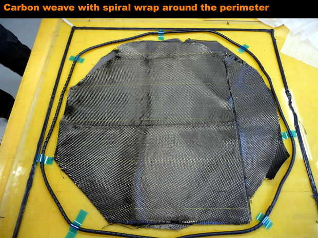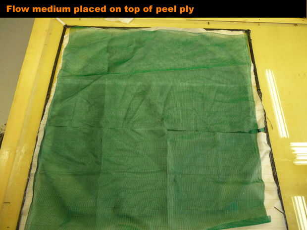 Un laminado húmedo regular debería funcionar bien, también. Por una fracción de volumen de fibra mejor puede añadirse presión mecánica sobre el laminado. Cualquier pieza plana es bueno, por ejemplo un panel MDF es fino con algunos pesos distribuidos en la parte superior. En ese caso el laminado es como sigue: molde superficie, cera, refuerzo impregnadas con resina (un rodillo de mohair es perfecto para mojar), capa (opcional), la cáscara perforada versión película, respiro para absorber el exceso de resina, pintores plástico o similar para evitar pesos por encima de vinculación para el respiro, panel con pesos en él.