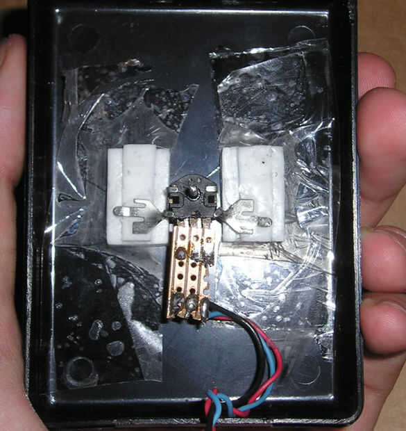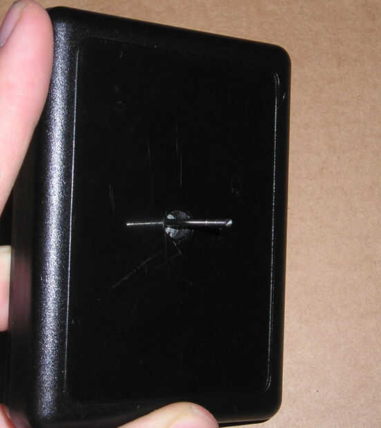 Primero, taladre un agujero en su caja de proyecto que es el mismo diámetro que la varilla de metal y pegar la varilla a través de él. Ahora tiene que montar su codificador para el interior de su caja de proyecto. Para esto, utilicé cinta autoadhesiva, que es doble cara y muy pegajosa. Luego fui esto con cinta un poco para ser cierto.