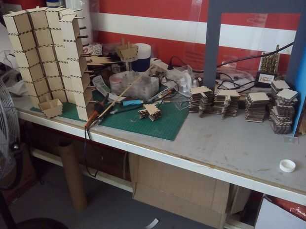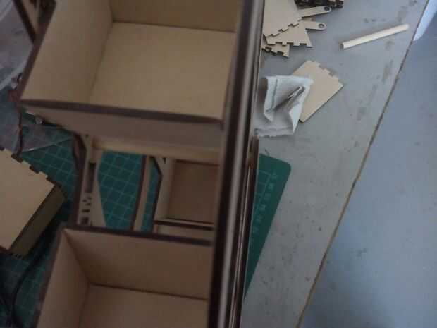 utilizo madera de 3,6 mm palos como eje y 3 m m MDF cortan con laser, arena con Fandeli J86 y para acabado A400