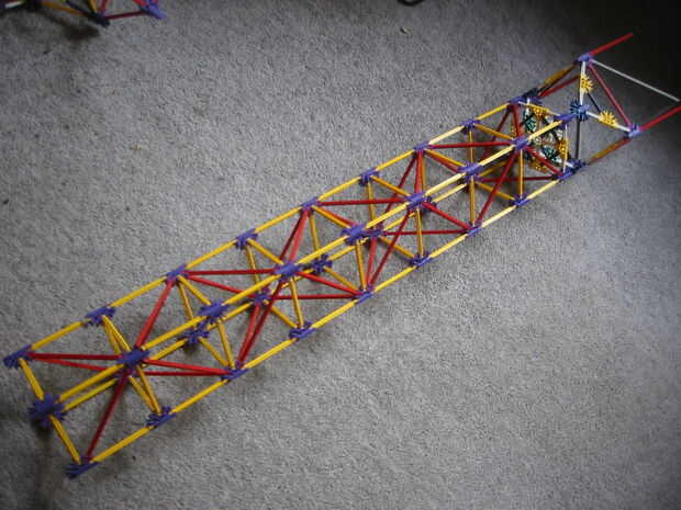 Es importante poner un conector gris en una de las barras verticales en el bloque superior. Esto conectará el puente entre las torres.