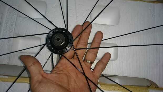 Voltea el volante de modo que el lado del motor no es hacia arriba. Gire el eje hacia la izquierda. Para los rayos naranja estamos trabajando ahora en radios de adentro hacia afuera. Estos rayos naranja son socios de radios rojos en una pestaña.