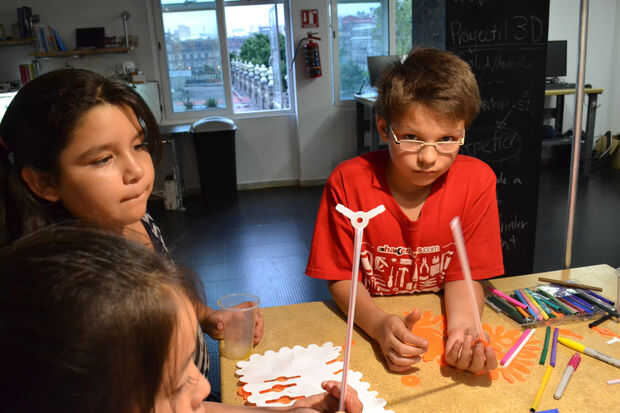 hice esto de tres taza de café, algunos clips de las oficinas, pajitas de plástico, alguna hoja de un papel de nes, pegamento...Pero qué im realmente fascinado fue el movimiento que logra con paciencia y cosas simples.Creo que cualquier niño quisiera