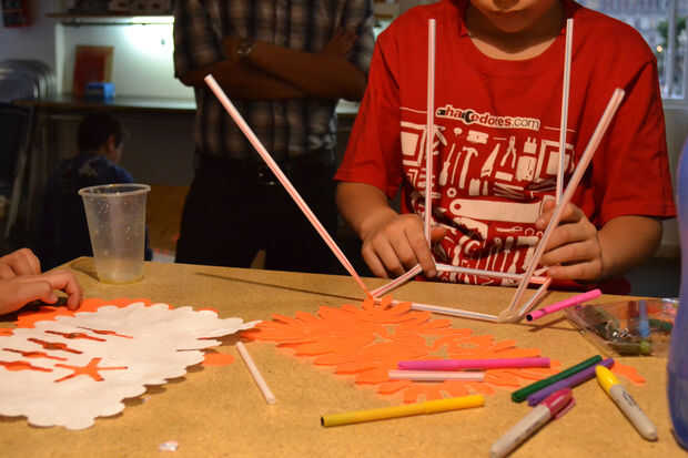Hacer un 1,5 metro brillante estructura de domo geodésico con conectores Strawbees, claro beber pajillas y un montón de palillos del resplandor. Strawbees son conectores de plástico que le permiten hacer cosas usando 6mm pajitas. Hemos descubierto qu