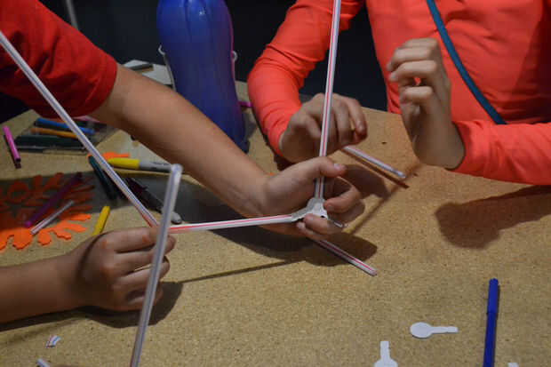 La base es mas pequeña el largo de un popote, por lo tanto vamos a recortar los cuatro del mismo tamaño (aproximadamente de 13 cm). De cada vértice nos quedó un conector, una ese conector le colocaremos un popote de su tamaño original.