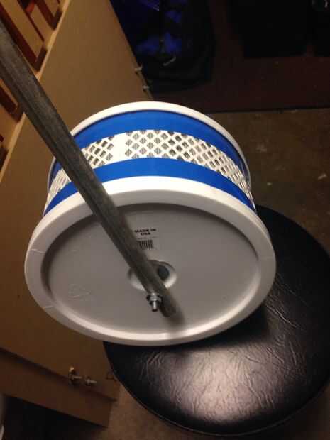 En la barra poner una tuerca una arandela emt una arandela, una tuerca y luego otra tuerca y luego otra arandela. Entonces el sándwich una tapa y coloque una arandela y otra tuerca. Apriete entonces agregue el polvo y poner la otra tapa y una arandela y apriete con una tuerca mariposa.