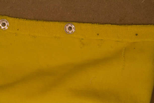 Cuando esto termine necesita coser los botones en los bordes, uno en la parte interior y otra en la parte exterior, utilizamos siete botones para ser más fuerte y el velcro para unirse con los rollos y cubrir los tres rodillos.
