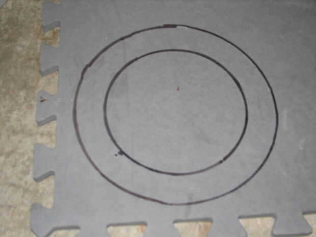 Es el primer paso en la fabricación de la rueda de manejo de IPod/IPhone para seleccionar un material duradero, que es bastante fácil de cortar. Elegí algunos "puzzle foam" que fue puesta alrededor de la casa. A continuación tendrá que encontrar a algún tipo de objeto circular para trazar. Aproximadamente 5-6" radio. A continuación, seleccione otro circular objeto aproximadamente 2" más pequeño que el círculo más grande. Y lo trace.