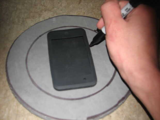a continuación, usted tendrá que trazar la silicona de iPod caso que llevará a cabo en última instancia, sostenga el dispositivo. Usted puede desear agregar más recortes, en el área que ha cortado, para añadir más efecto. Se procederá al seguimiento del caso cortando el área vacía, como se muestra en la segunda imagen adjuntada.