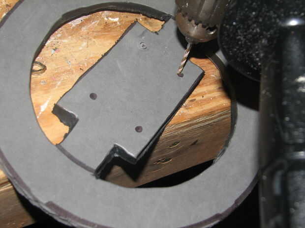 Necesita ahora para el caso de manera provisional en el lugar final se alineará la cinta. A continuación, perfore cuatro agujeros, uno en cada esquina por el material de la espuma y luego por el caso.